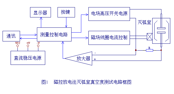 整機(jī)由測(cè)量控制電路、電場(chǎng)高壓產(chǎn)生電路、磁場(chǎng)線圈電流控制電路、通訊、打印機(jī)、液晶顯示電路等組成。其工作過程為:由測(cè)量控制電路發(fā)出指令,由開關(guān)電源給磁場(chǎng)電容充電,通過控制電路監(jiān)控,當(dāng)磁場(chǎng)電容上的電壓達(dá)到預(yù)定值后,控制電路發(fā)出兩路控制信號(hào)分別控制電場(chǎng)高壓的輸出和磁場(chǎng)線圈電流的導(dǎo)通,使滅弧室處于強(qiáng)電場(chǎng)、強(qiáng)磁場(chǎng)的狀態(tài)中,滅弧室開始放電,產(chǎn)生離子電流I,如圖2中的曲線I所示。該電流經(jīng)取樣電阻R和預(yù)處理電路后輸入單片機(jī),最后經(jīng)運(yùn)算由液晶顯示屏顯示測(cè)得的真空度值。