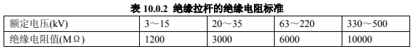 2.絕緣拉桿的絕緣電阻值,在常溫下不應低于表 10.0.2 的規定。