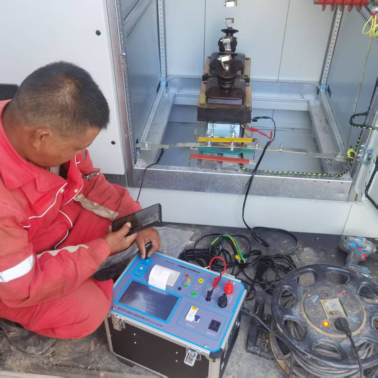 4.絕緣電阻測(cè)試試驗(yàn):利用絕緣電阻測(cè)試儀,可完成對(duì)各類絕緣材料電阻值的測(cè)量,同時(shí)適用于變壓器、電機(jī)、電纜及各類電器設(shè)備的絕緣電阻檢測(cè)。通過(guò)該試驗(yàn),能有效判斷設(shè)備絕緣層的老化程度、受潮情況及是否存在絕緣缺陷,為設(shè)備安全運(yùn)行提供依據(jù)。