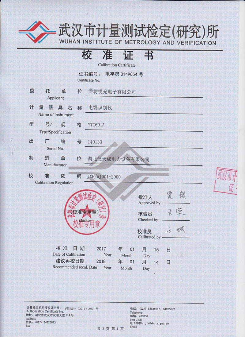 具有一次標(biāo)定多條電纜的功能,每條電纜標(biāo)定好后不能改變測(cè)試頻率和放大倍數(shù),否則要重新標(biāo)定 | |