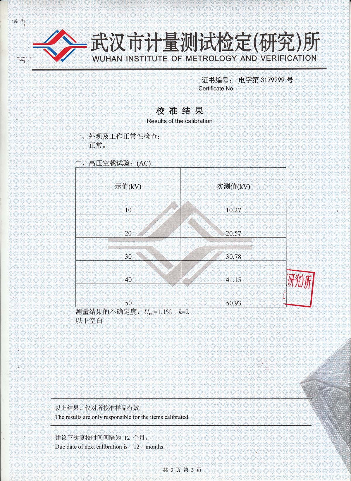 電壓等級 | 10kV~300kV |