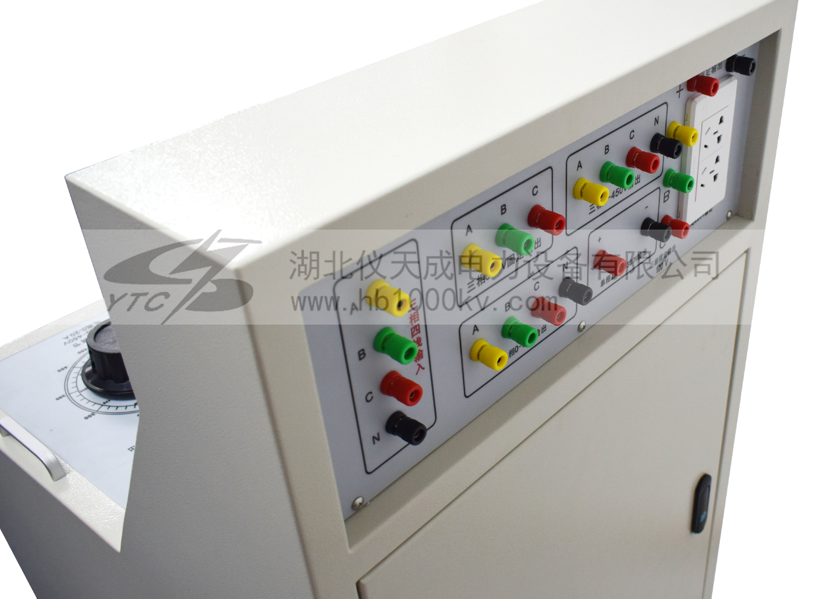 1、三相AC100V輸出(固定值) 一組 2、三相AC 0 - 50A輸出(〈10V,可調值) 一組 3、交流操作電壓輸出 AC 0 – 420V,220V時,電流小于10A 一組 4、直流操作電壓輸出24V.36Ⅴ.48Ⅴ.110Ⅴ.220Ⅴ 5、單相AC220V輸出(固定值,插座形式) 二組 6、三相AC380V輸出(固定值,接線柱) 二組 |