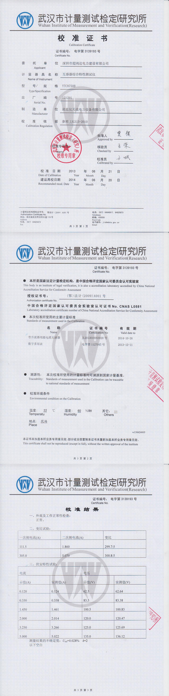 YTC8750B互感器綜合特性測(cè)試儀資質(zhì)證書