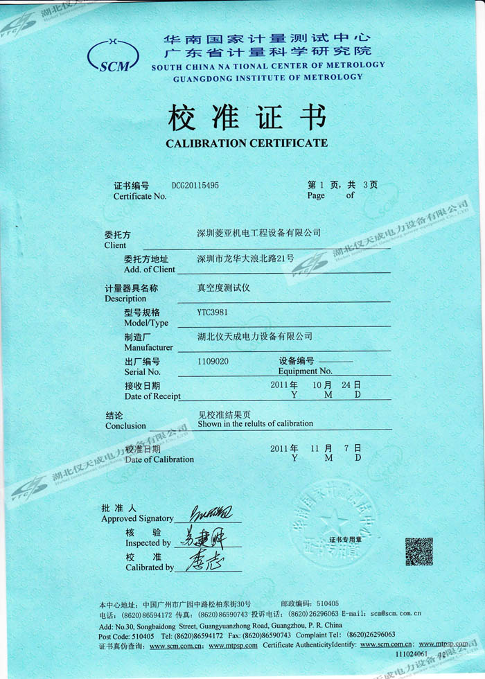 轉(zhuǎn)載:"YTC3981真空度測(cè)試儀的資質(zhì)證書" 請(qǐng)注明來源于儀天成電力。 更多技術(shù)問題請(qǐng)致電儀天成電力客戶服務(wù):027-87876585,技術(shù)部專線:027-87876585,在線客服:719388481